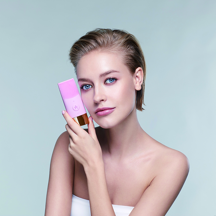 製品を起動後、顔に沿ってゆっくり移動して洗浄します。